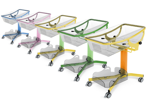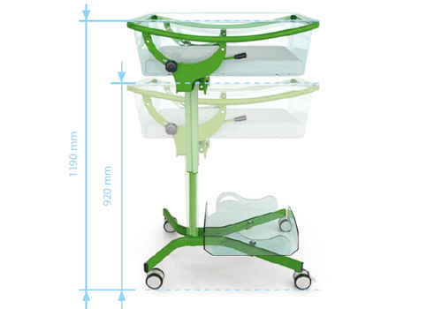 Cuna sobre carro con altura modificable a través de muelle de gas.