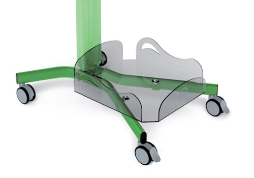Basamento del carre en forma de “X” para optimizar la estabilidad de la cuna y permitir el acercamiento a la cama; fijado sobre columna central y completo de ruedas hermanadas, dos de ellas con freno.