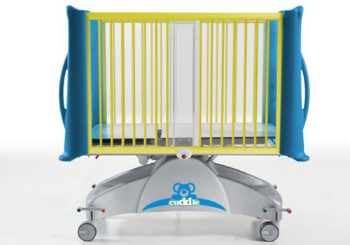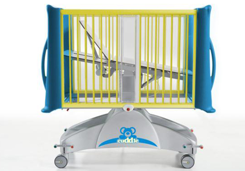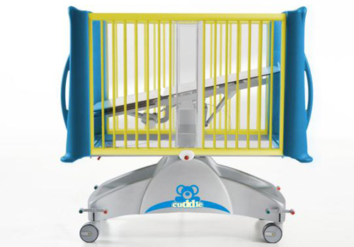Cuna pediatrica hospitalaria altura variable electrica con Trendelenburg y barandillas con barrotes