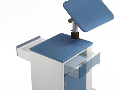 Atril en fibra postformada con borde anti caída, regulable en altura e inclinación.